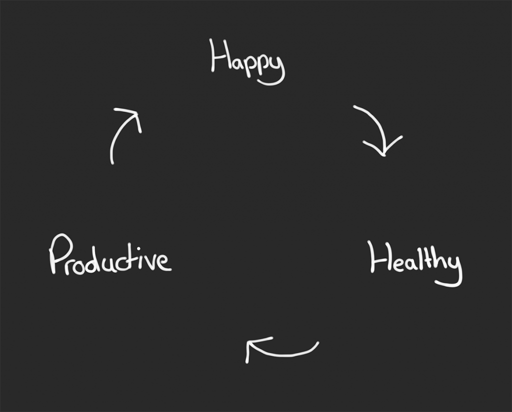 If I’m happy… If I’m working with people I like, enjoying the work I’m doing, and working in environments I like (my office, co-working spaces, etc).